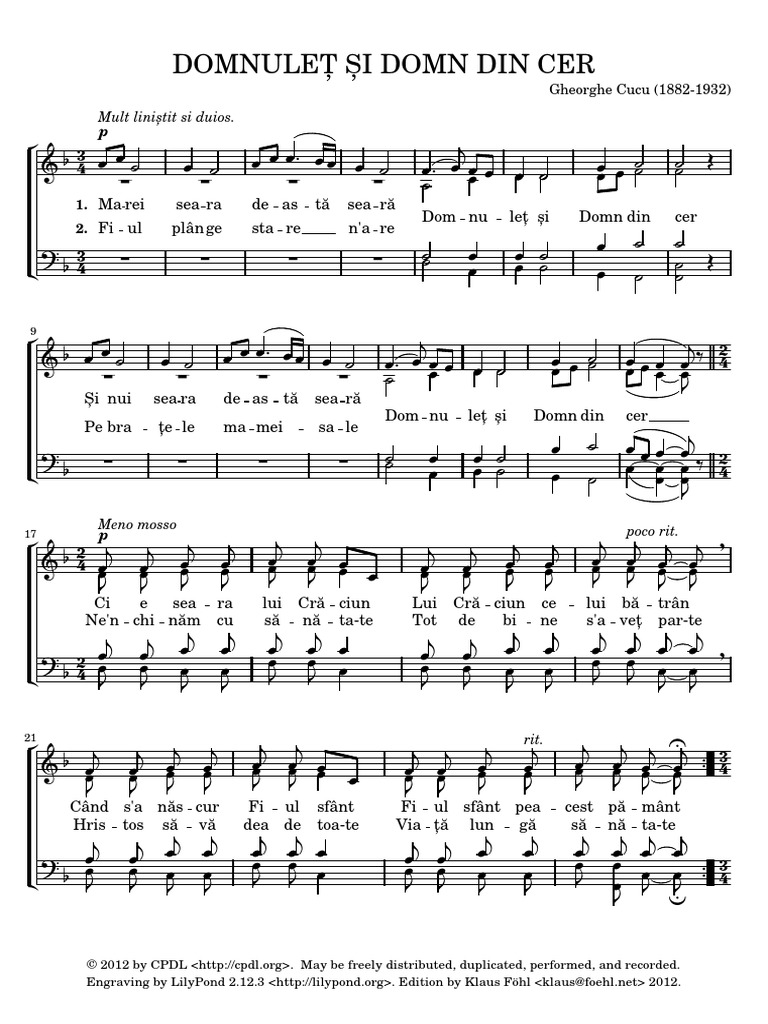 Ro Partitura Domnulet Si Domn Din Cer Youtube