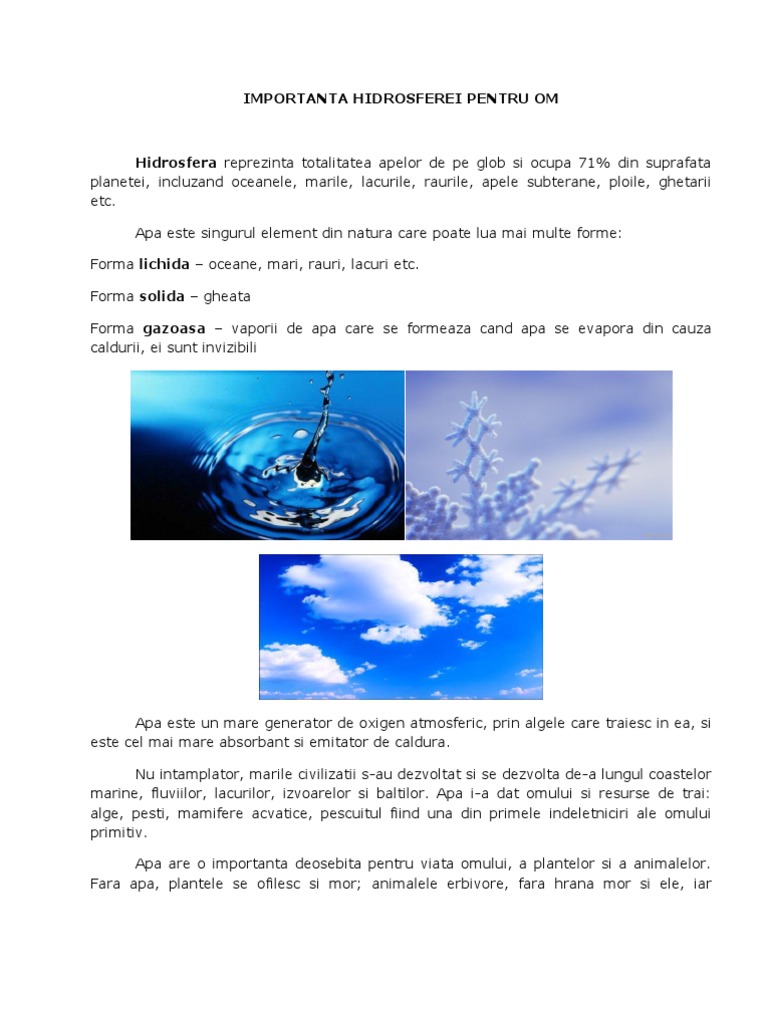 Important A Hidrosferei Pentru Om