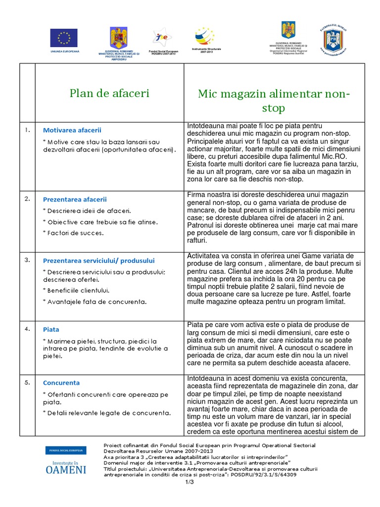Plan De Afaceri Magazin Alimentar Download Risco