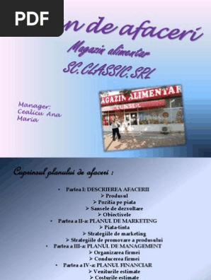 Plan De Afaceri Magazin Alimentar